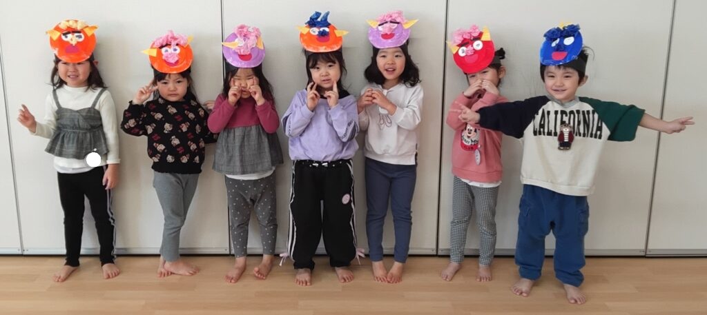 「鬼来るのかな??」とそわそわしている子もいましたが、各クラスでパーティが始まると夢中で参加する子ども達🤩