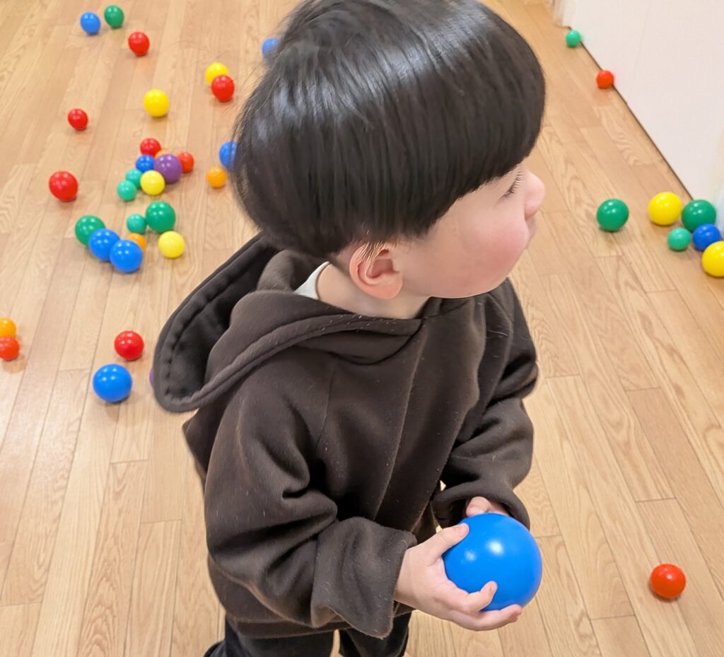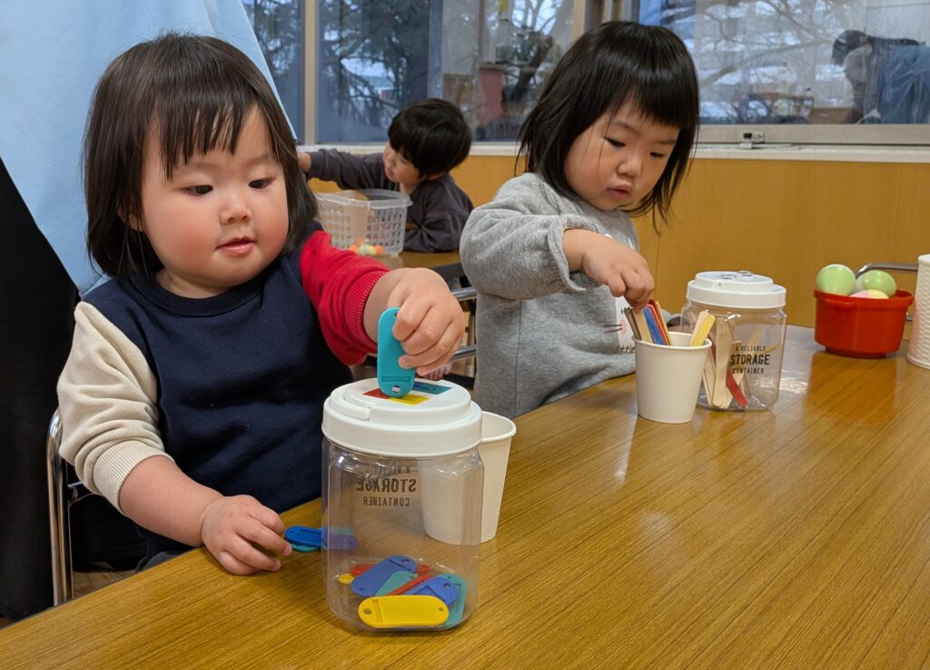乳児さんは、「ポットン遊び」「的当て遊び」