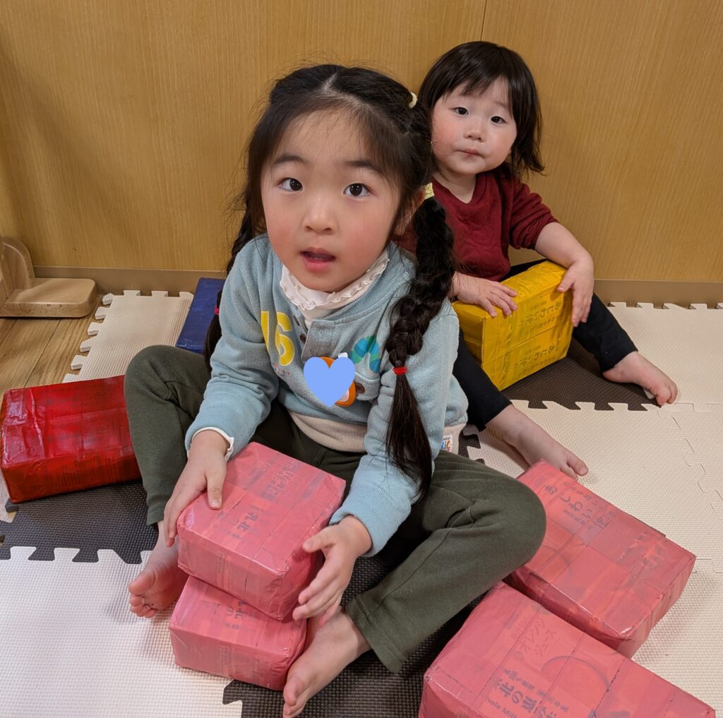 「牛乳パックの積み立て遊び」を行いました🥎✨