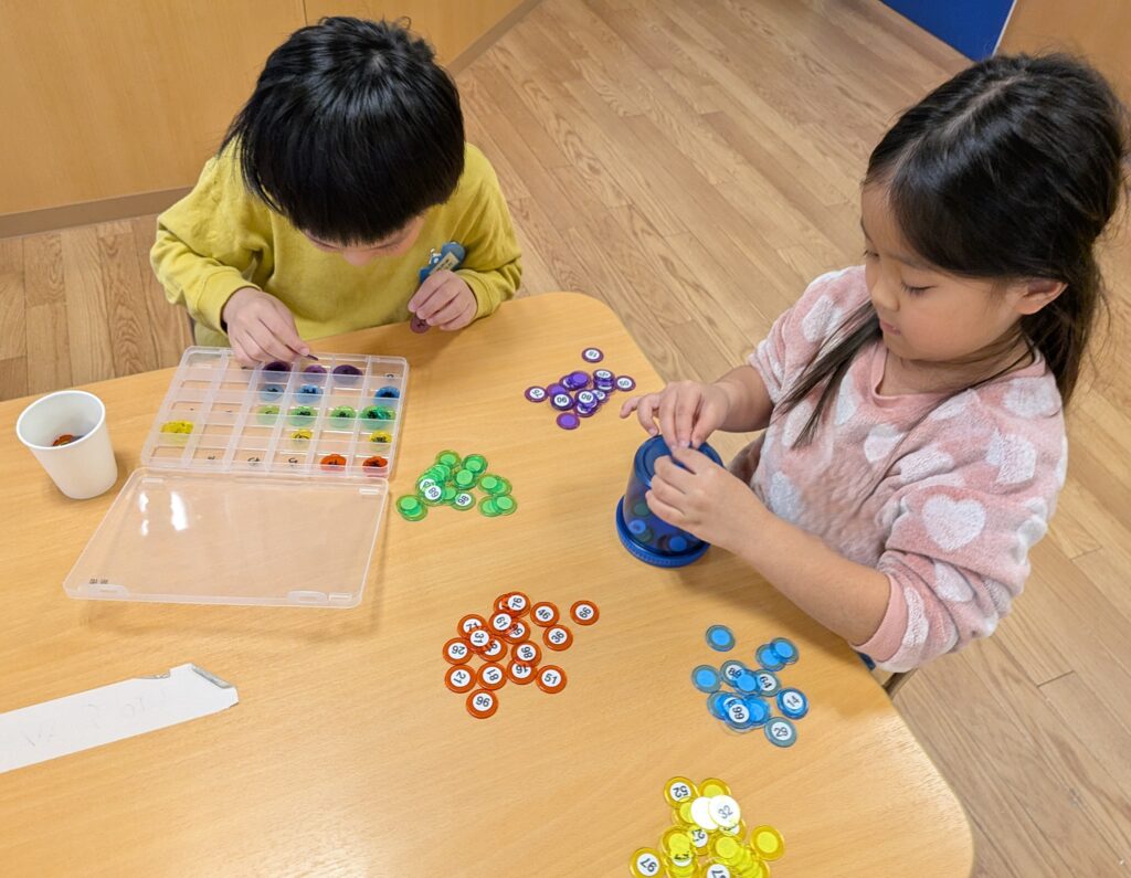 ひらがなや数字が書かれたおはじきや、色合わせができるおもちゃ、