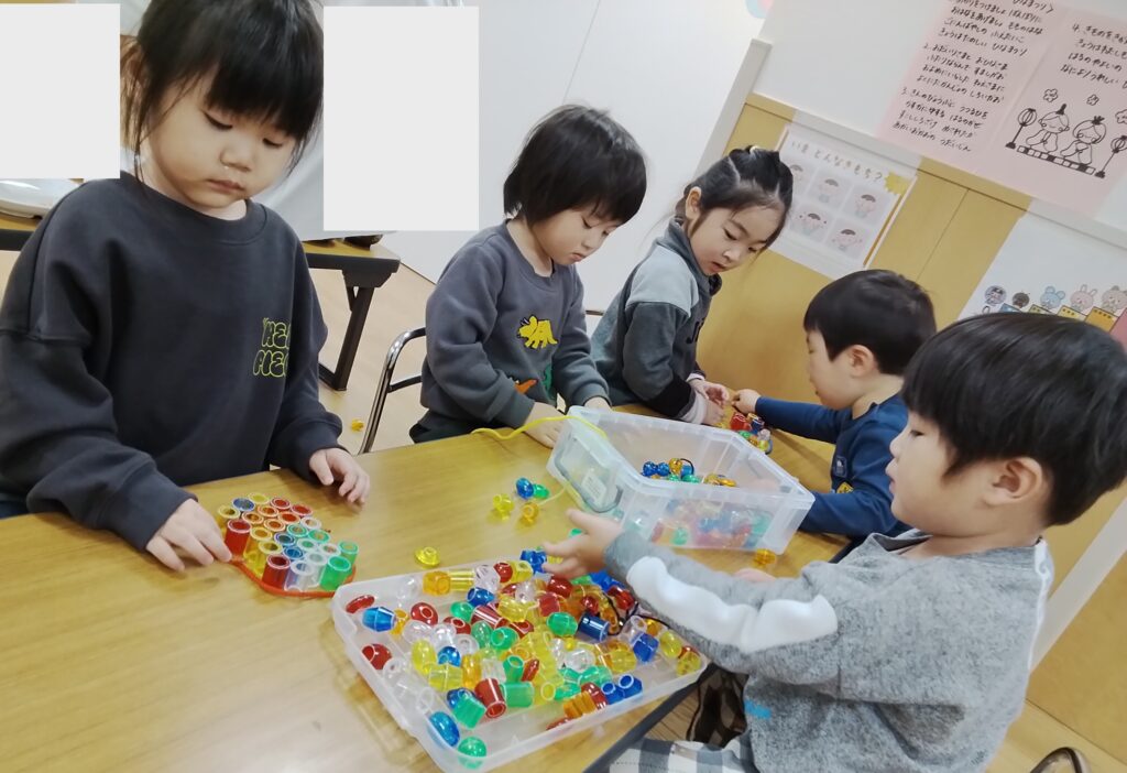 そして2歳児さんは、色とりどりのプラスチックで、個人個人好きな