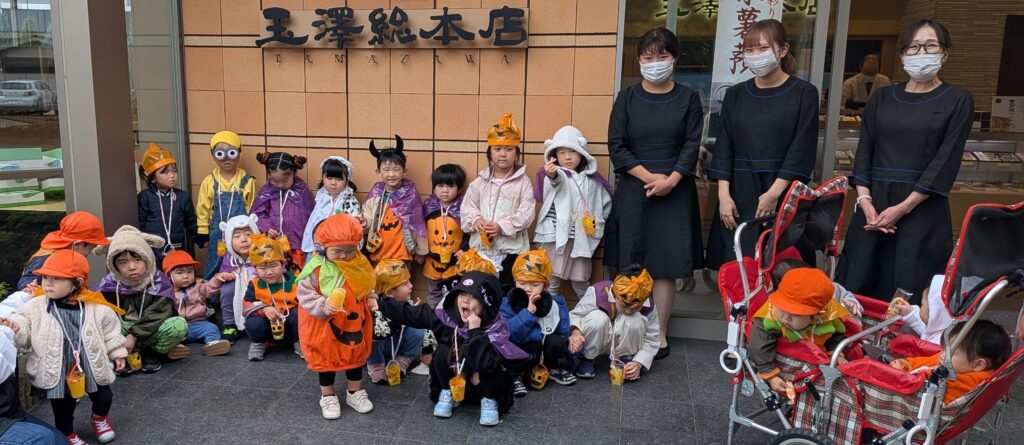 お菓子を貰ってからは記念撮影をしてきちんと「ありがとうございました!」と挨拶をしていました!