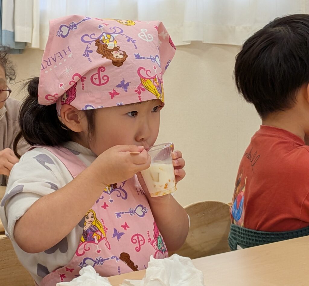 焼きあがるまではフルーツ牛乳を作って待ちました♡