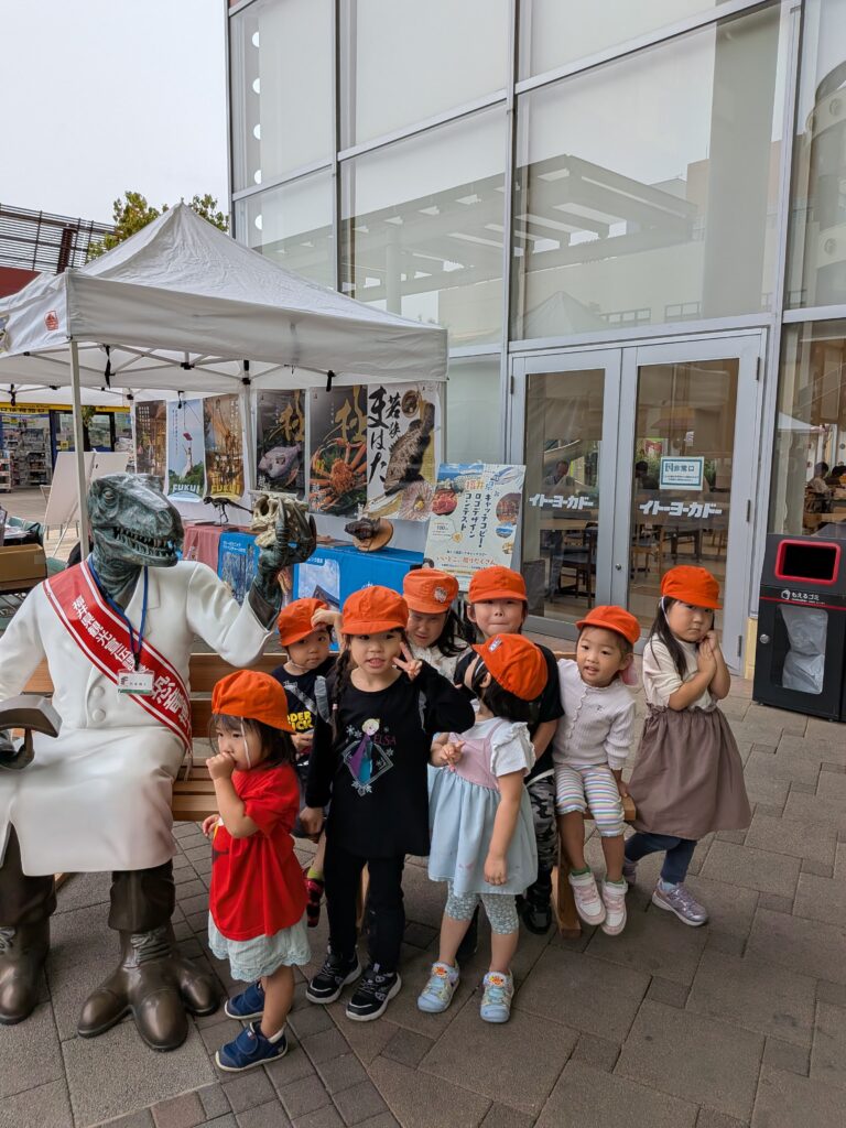 「恐竜さんの隣に座りたい―!!」「怖いよー!!!」と様々な声が聞こえていました😊