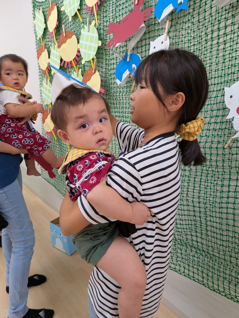 数日前に先生たちが、ちょうちんと風鈴を飾りつけしている様子をみていた子どもたちは