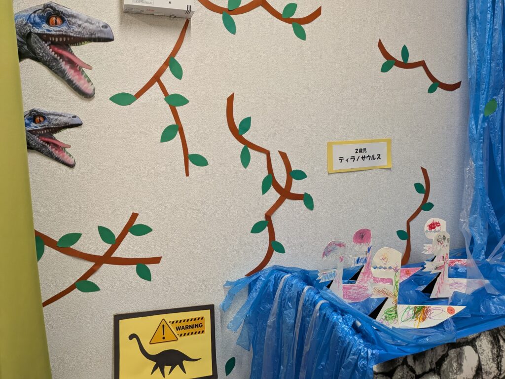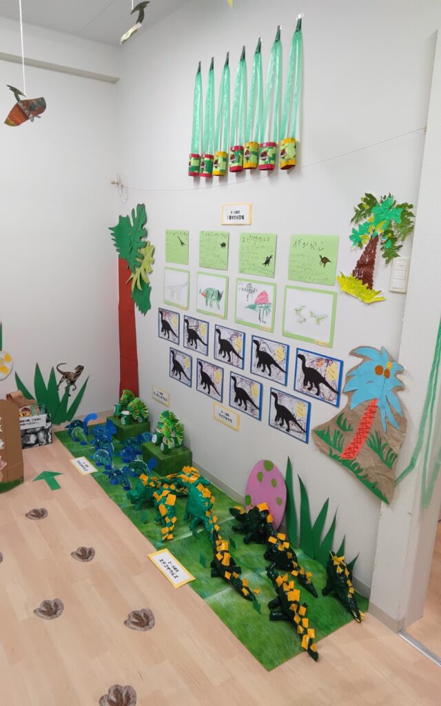 4・5歳児さんが描いた恐竜の絵や説明も展示してあります♪
