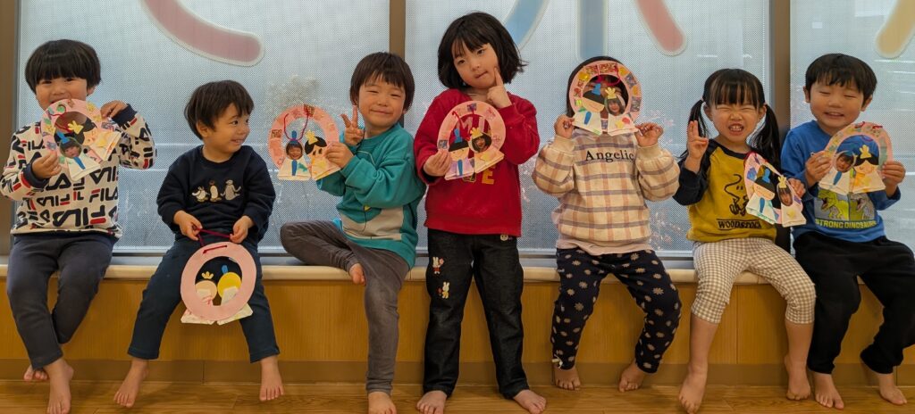 各クラスで工夫して作った手作り雛人形をお披露目しました。「お着物を可愛くしたよ!」「お顔を上手に描けたよ!」と、自信満々に作品を紹介し合う姿がとても頼もしかったです。