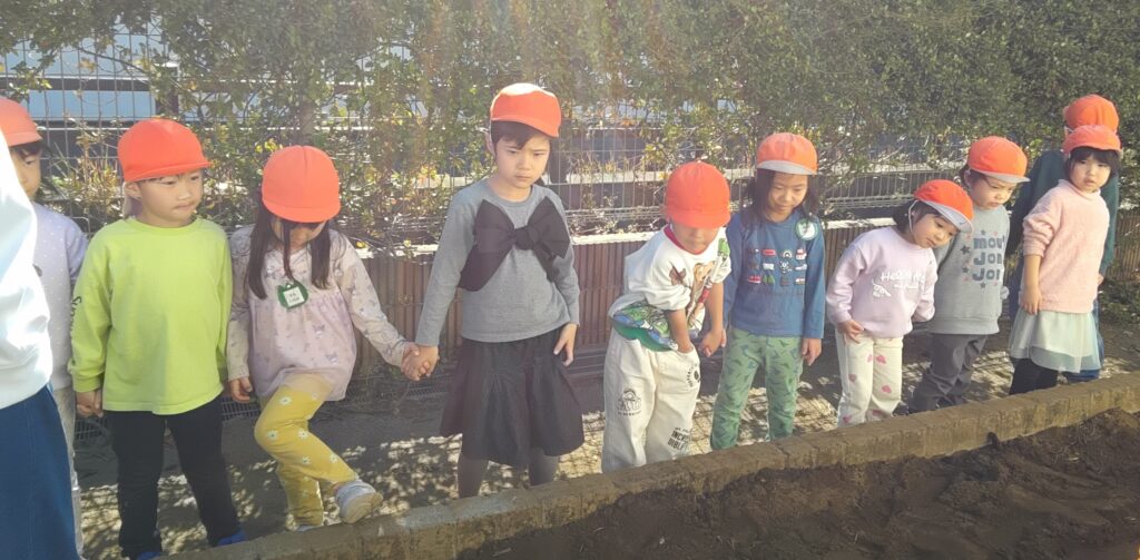 次に、仲良しの証としてプランターにチューリップを植えました🌷他園のお友達と二人一組になり、土を一生懸命、真剣に掘る子どもたち。初めてのお友達と力を合わせる姿は、とても頼もしく感じられました⭐