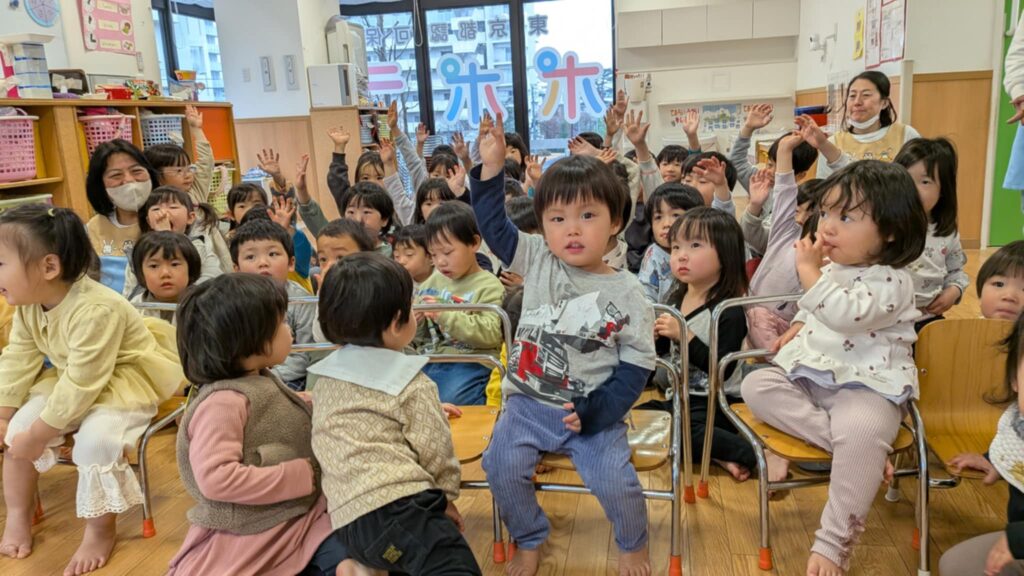 二択のクイズで乳児さんもたくさん手をあげていました