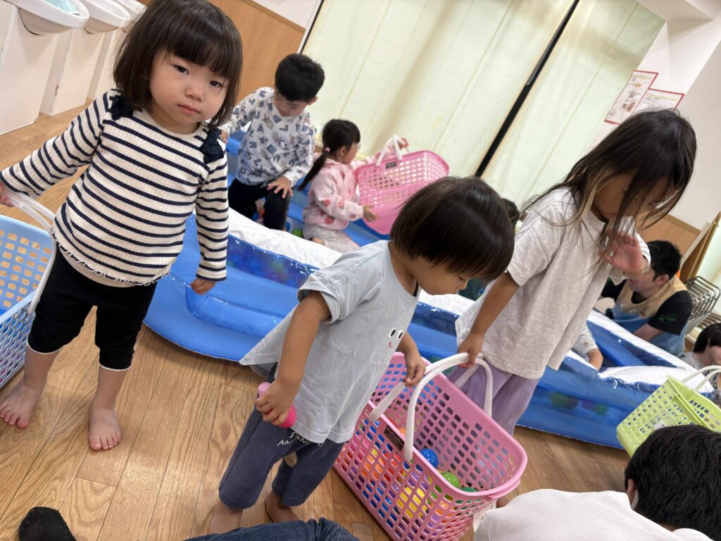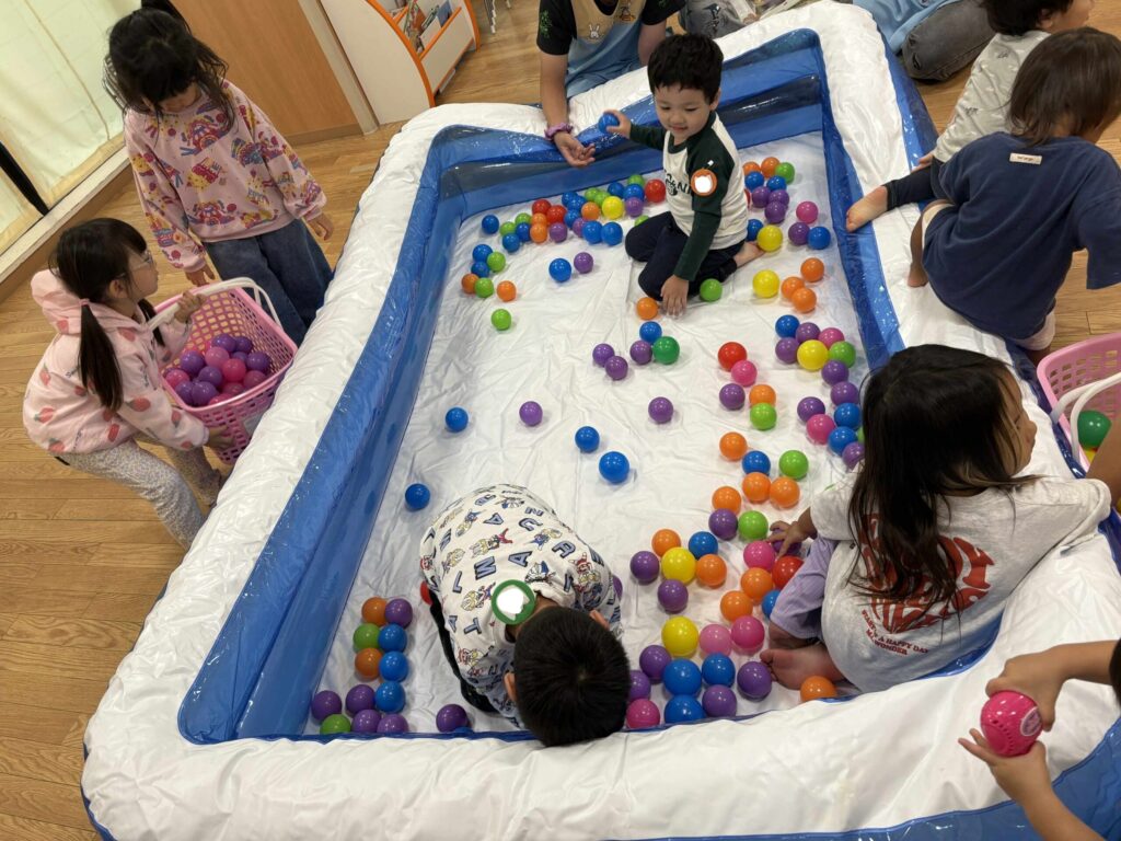 製作や、リトミックといろいろしますがこの日はボール遊びをしました✨