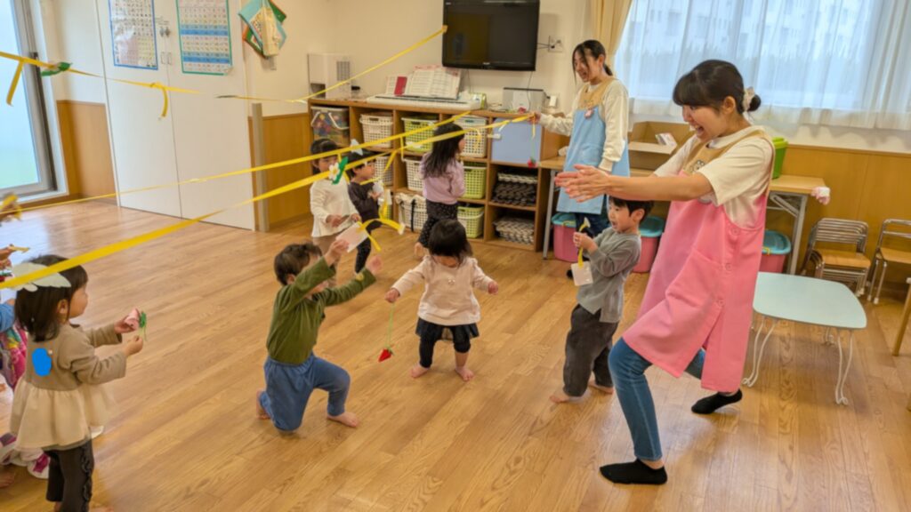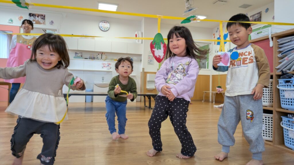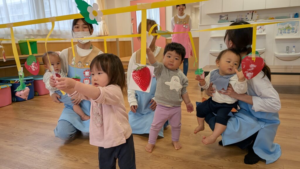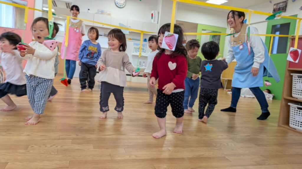 画用紙で作ったいちごでも、工夫次第でこんなに楽しい“いちご狩り”になるんだと改めて感じた一日でした。季節感を取り入れながら、これからも子どもたちがワクワクするような活動を取り入れていきたいと思います。