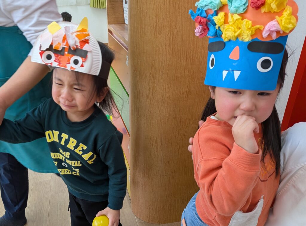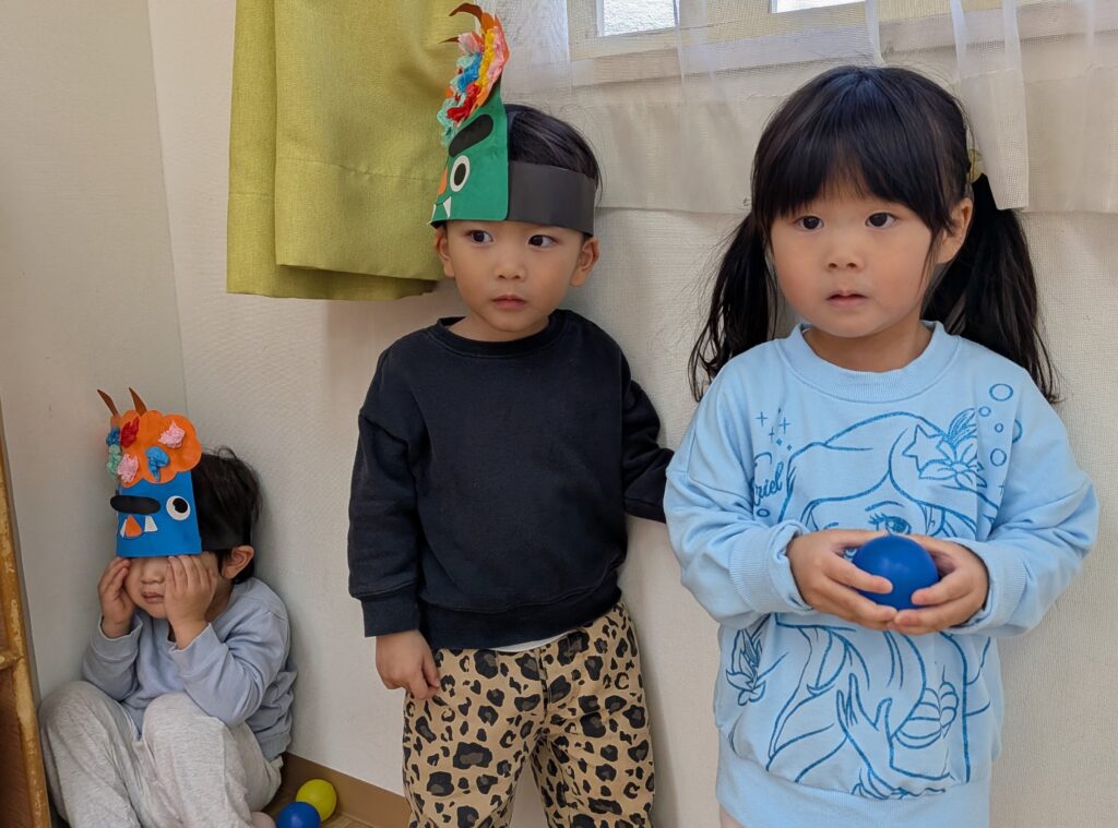 保育室の扉を誰かが叩いています。赤鬼登場ーーーー👹(お約束の笑)