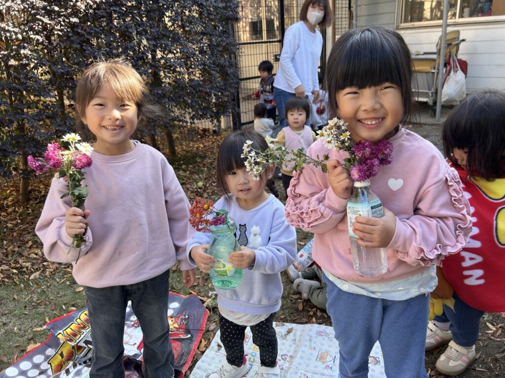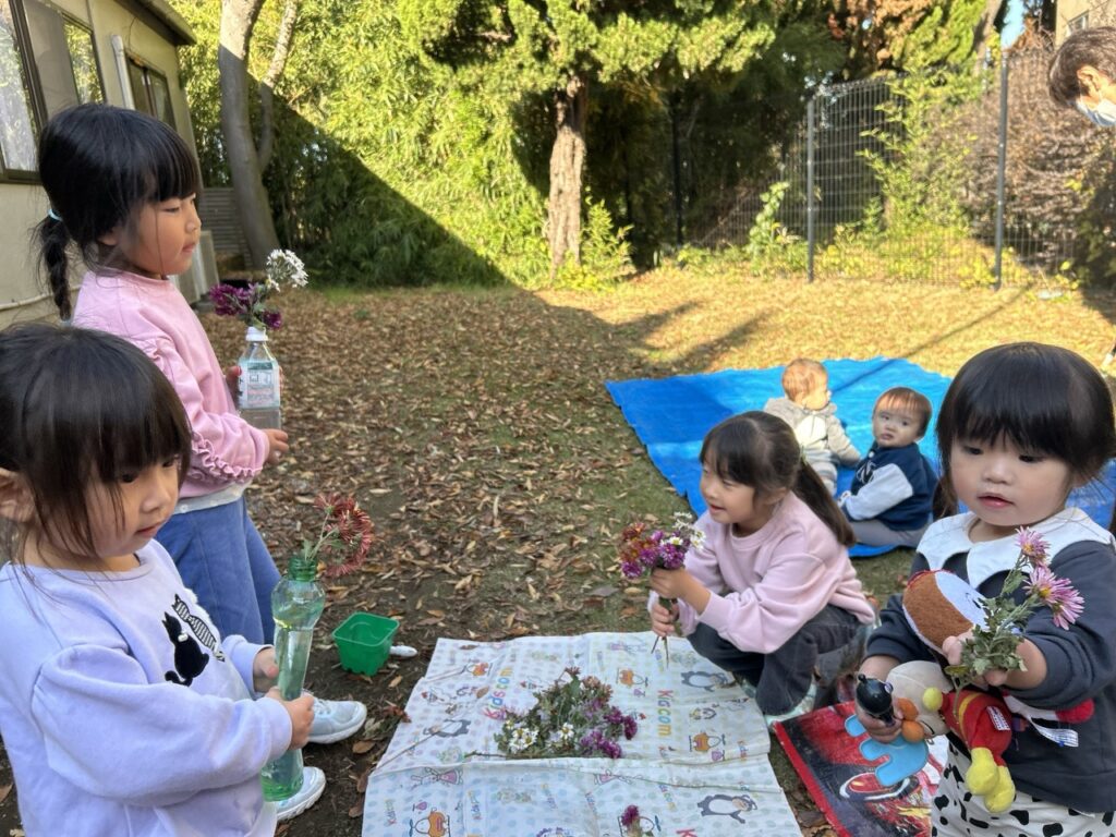 この日は園庭に出て「お花屋さんごっこ」を楽しみました!