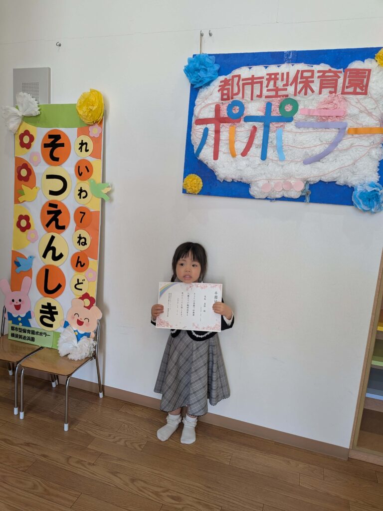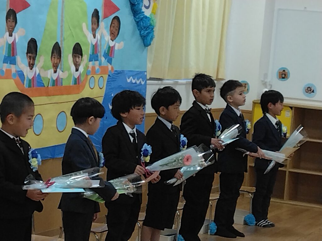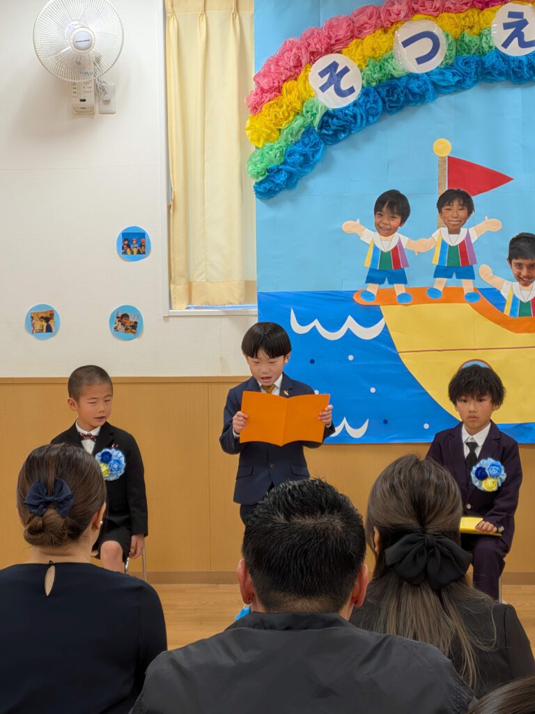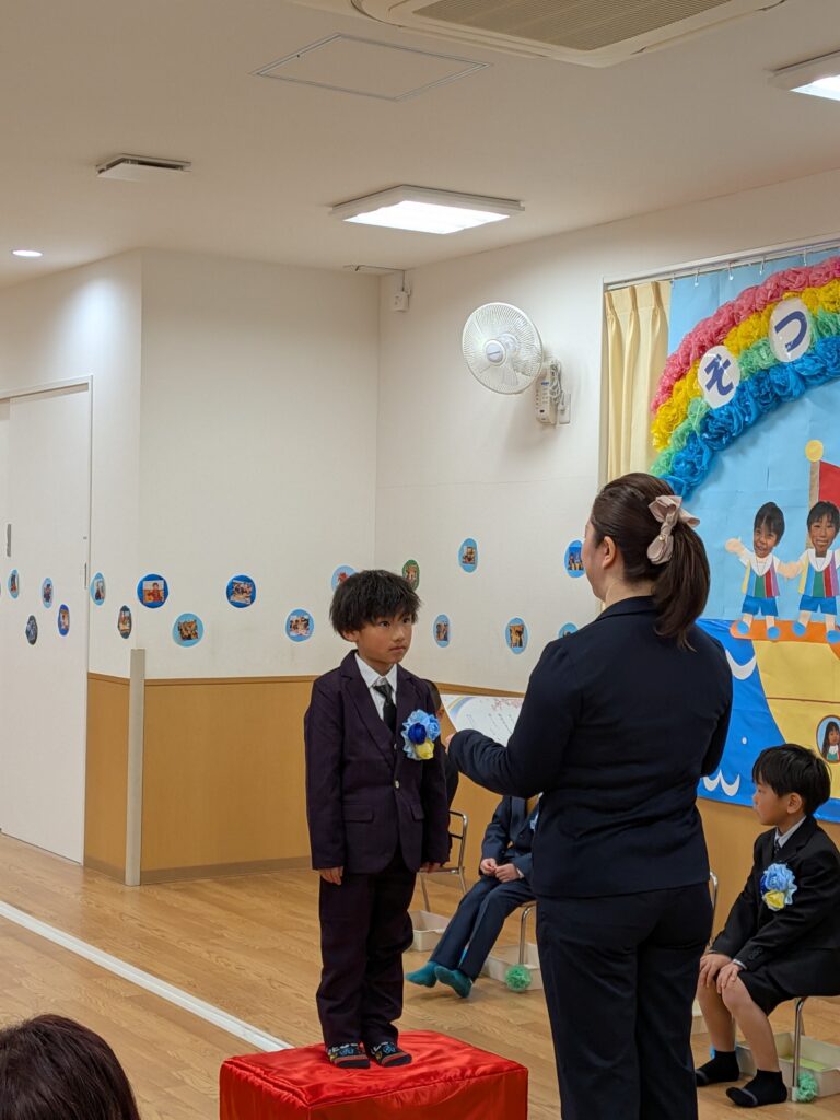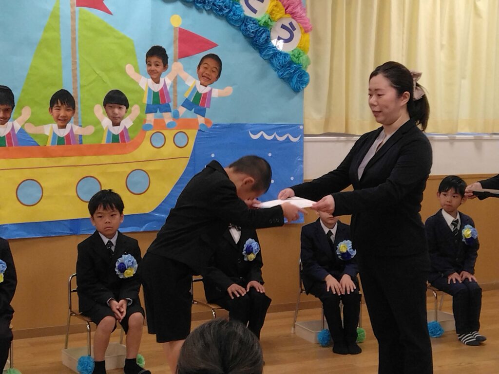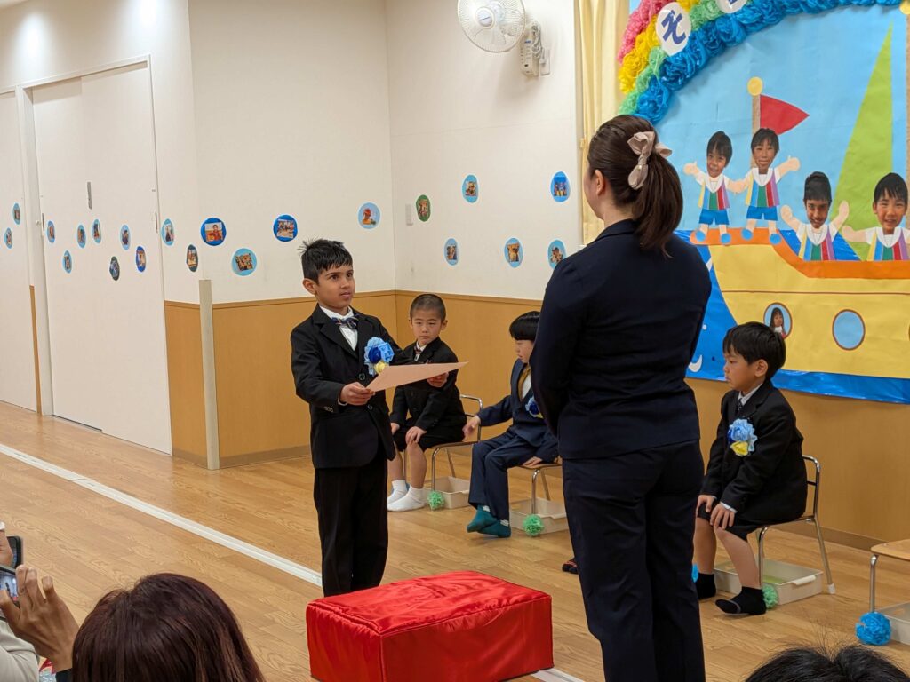 卒園証書授与では、しっかりとチーフと目を合わせて受け取り